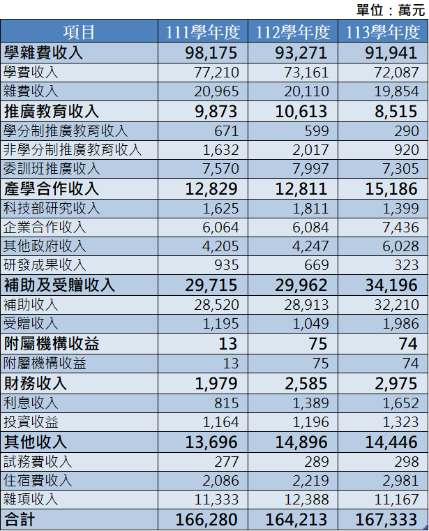 在校生申請就學貸款、獎助學金、學雜費減免之金額、人數與比率